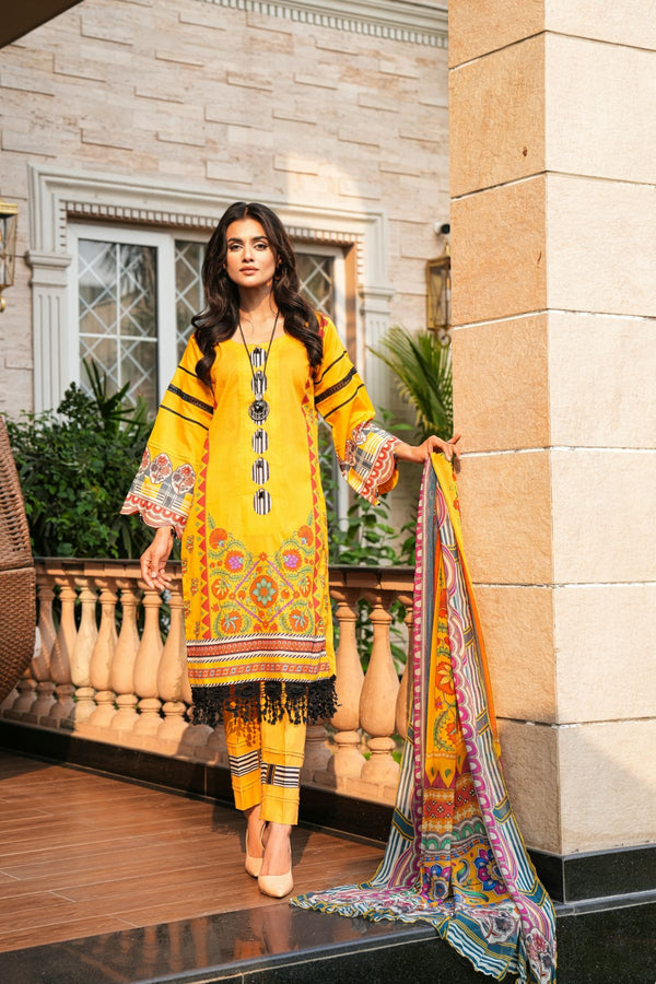 Upgrade your lawn game with the 3PC Lawn Dress with a lively Pure Lawn Digital Printed Shirt, a funky Pure Chiffon Digital Printed Dupatta, and a timeless Cotton Trouser. Say...