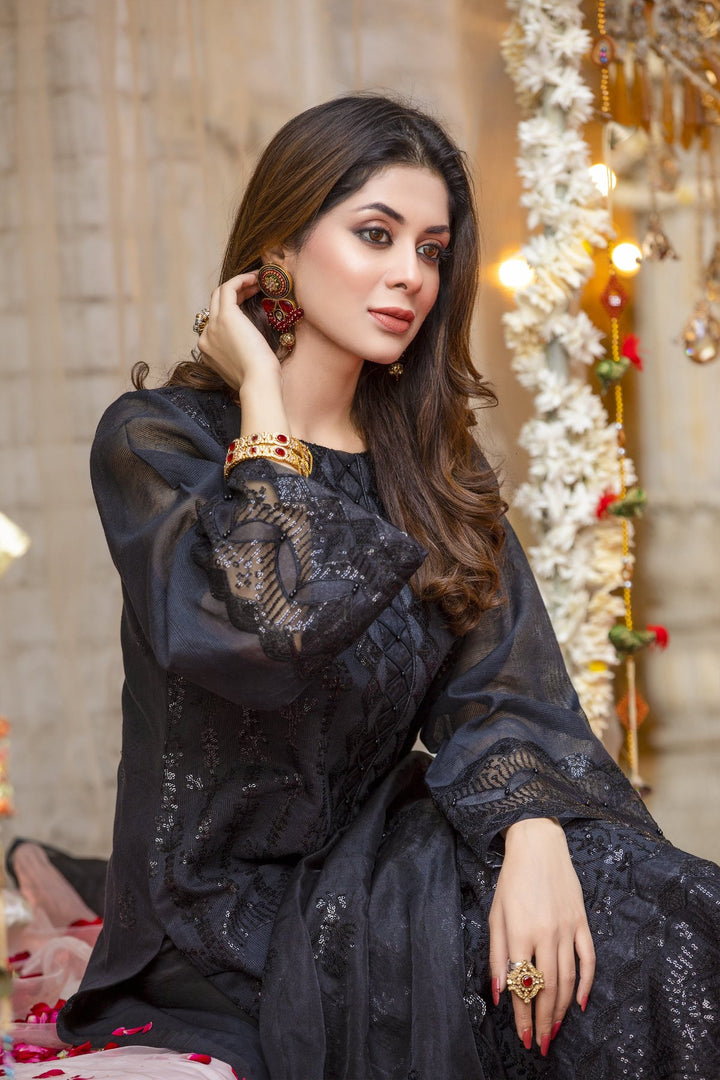 This women's dress is a stunning combination of traditional and modern elements, featuring a khaadi shirt, viscous trouser, and medium silk inner, paired with a khaadi net dupatta embellished with tissue and beads at the neckline, sleeves, and daman. The cutwork dupatta adds a touch of elegance and grace to the overall design. Perfect for festive occasions or formal events, this dress showcases the beauty of traditional fabrics and intricate embellishments, while also providing comfort and versatility for the modern woman. With its timeless appeal and exceptional craftsmanship, this dress is a must-have for any stylish wardrobe.