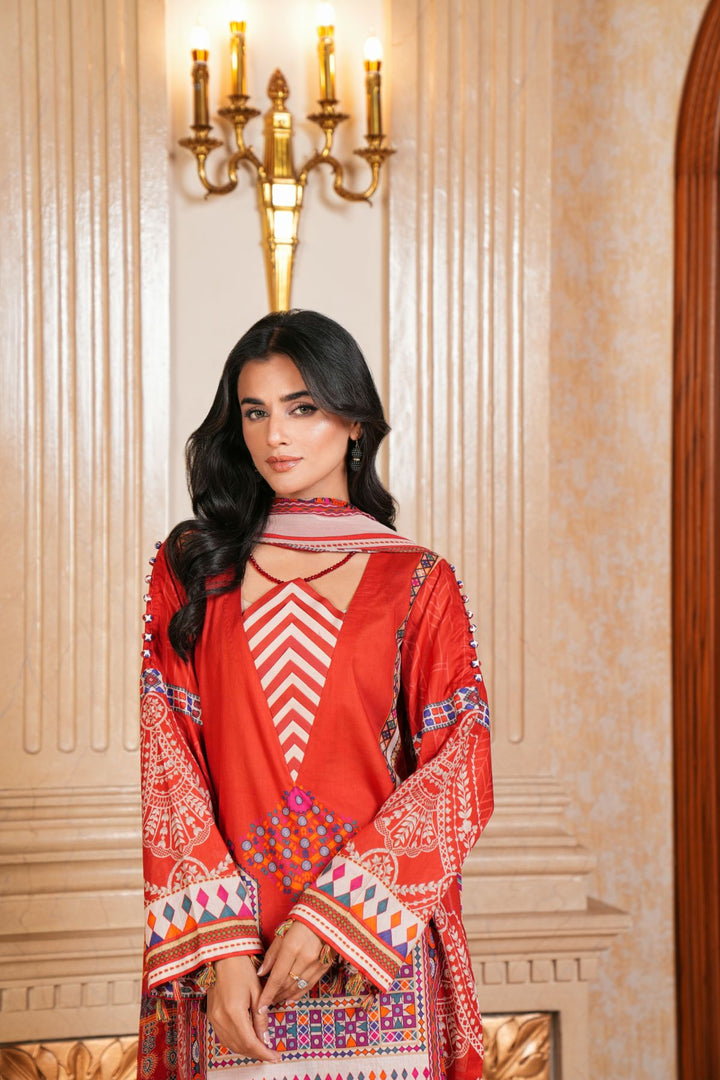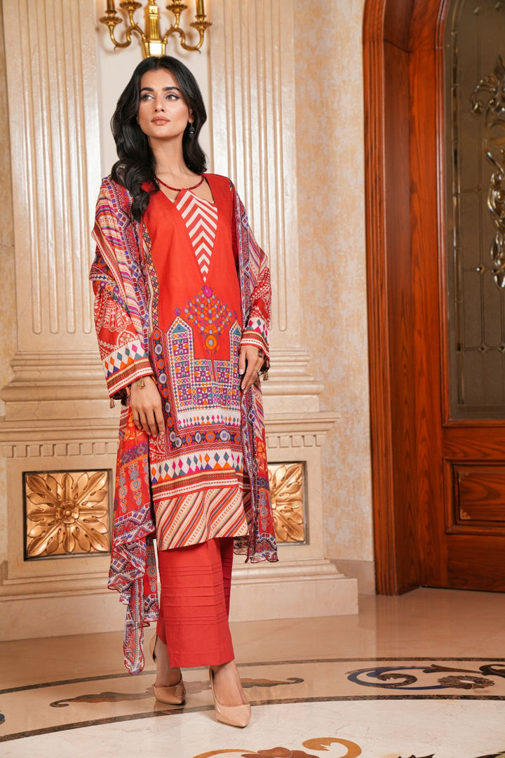 Upgrade your lawn game with the 3PC Lawn Dress with a lively Pure Lawn Digital Printed Shirt, a funky Pure Chiffon Digital Printed Dupatta, and a timeless Cotton Trouser. Say bye to boring and hello to playful style with this gorgeous ensemble.