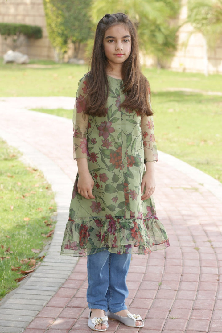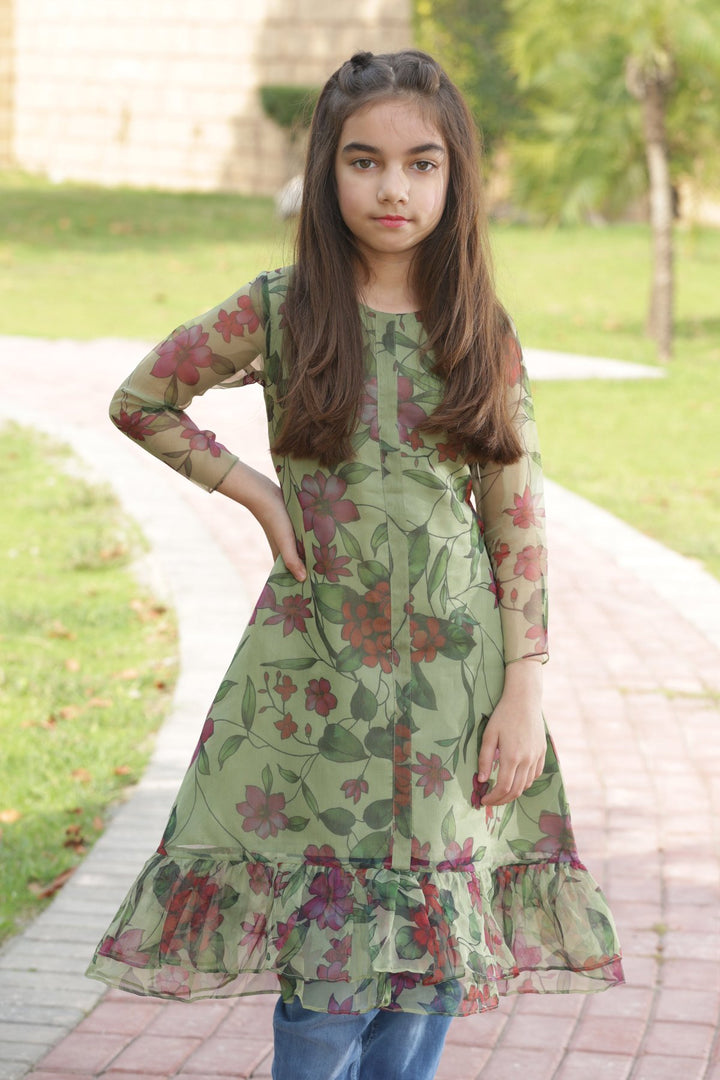 Introducing our delightful kids' frock, featuring a captivating organza sublimated print. This charming frock is designed to make your little one shine with its vibrant colors and playful patterns. Crafted with care, it offers a comfortable and stylish fit, allowing your child to move freely and enjoy any occasion.