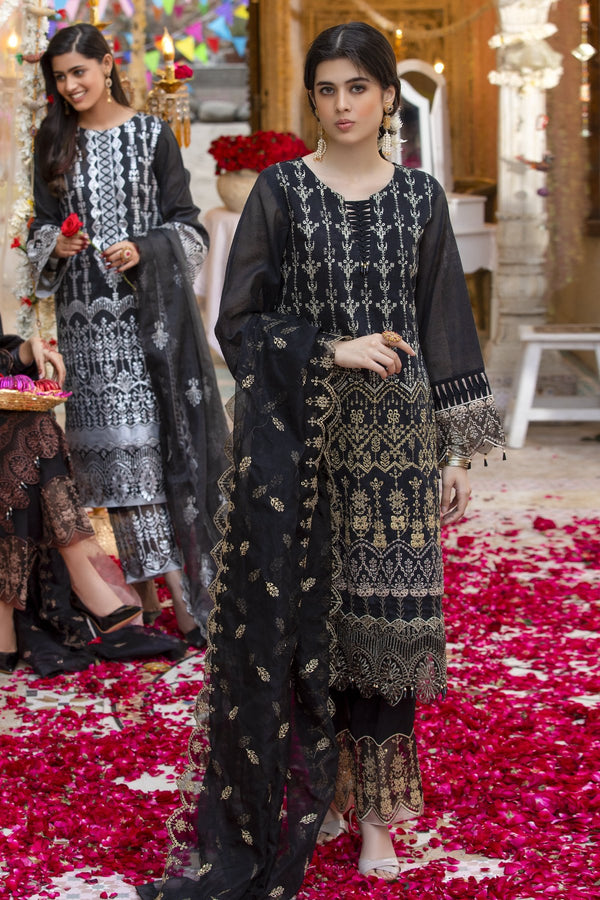 This women's dress is a stunning combination of traditional and modern elements, featuring a khaadi shirt, viscous trouser, and medium silk inner, paired with a khaadi net dupatta embellished with...