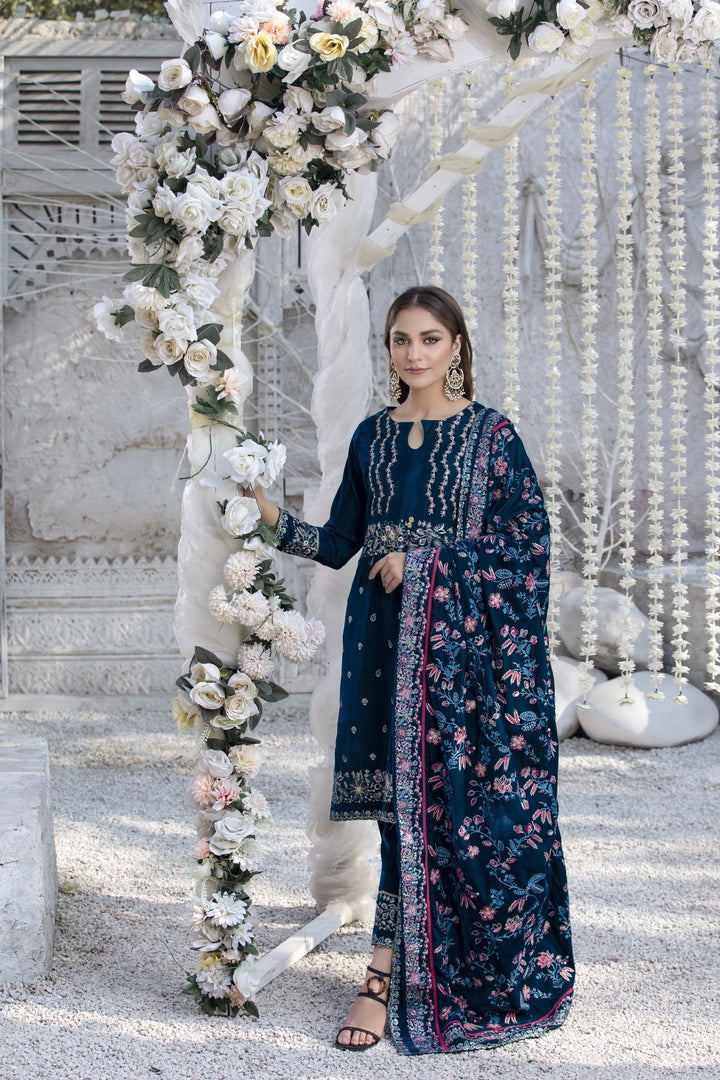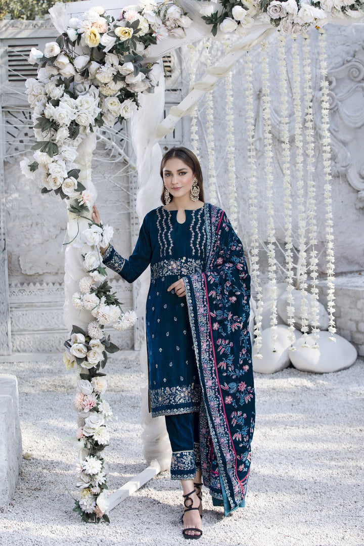 Introducing our luxurious velvet shawl, perfect for adding a touch of elegance to any outfit. Made from soft and plush velvet material, this shawl is designed to keep you warm and stylish all season long. The rich velvet texture adds a touch of luxury and sophistication to any look, making it perfect for special occasions or casual wear. The shawl is large enough to be worn as a wrap or draped over your shoulders for a chic look. It is available in a variety of colors to match any outfit and can be paired with any outfit. Add a touch of class to your wardrobe with Mehryam velvet shawl.