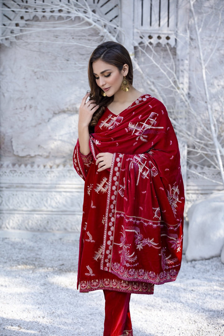Introducing our luxurious velvet shawl, perfect for adding a touch of elegance to any outfit. Made from soft and plush velvet material, this shawl is designed to keep you warm and stylish all season long. The rich velvet texture adds a touch of luxury and sophistication to any look, making it perfect for special occasions or casual wear. The shawl is large enough to be worn as a wrap or draped over your shoulders for a chic look. It is available in a variety of colors to match any outfit and can be paired with any outfit. Add a touch of class to your wardrobe with Mehryam velvet shawl.