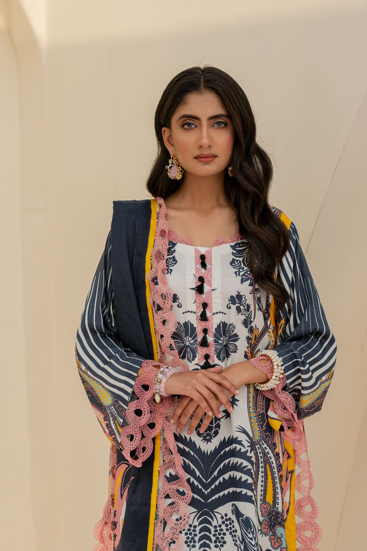 Shirt: 3.25 Yards Digital Printed, Dupatta: 2.75 Yards Digital Printed, Trouser: 2.5 Yards (Dyed)