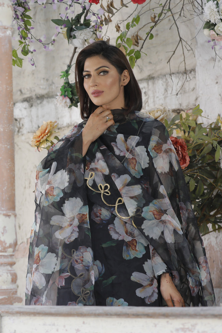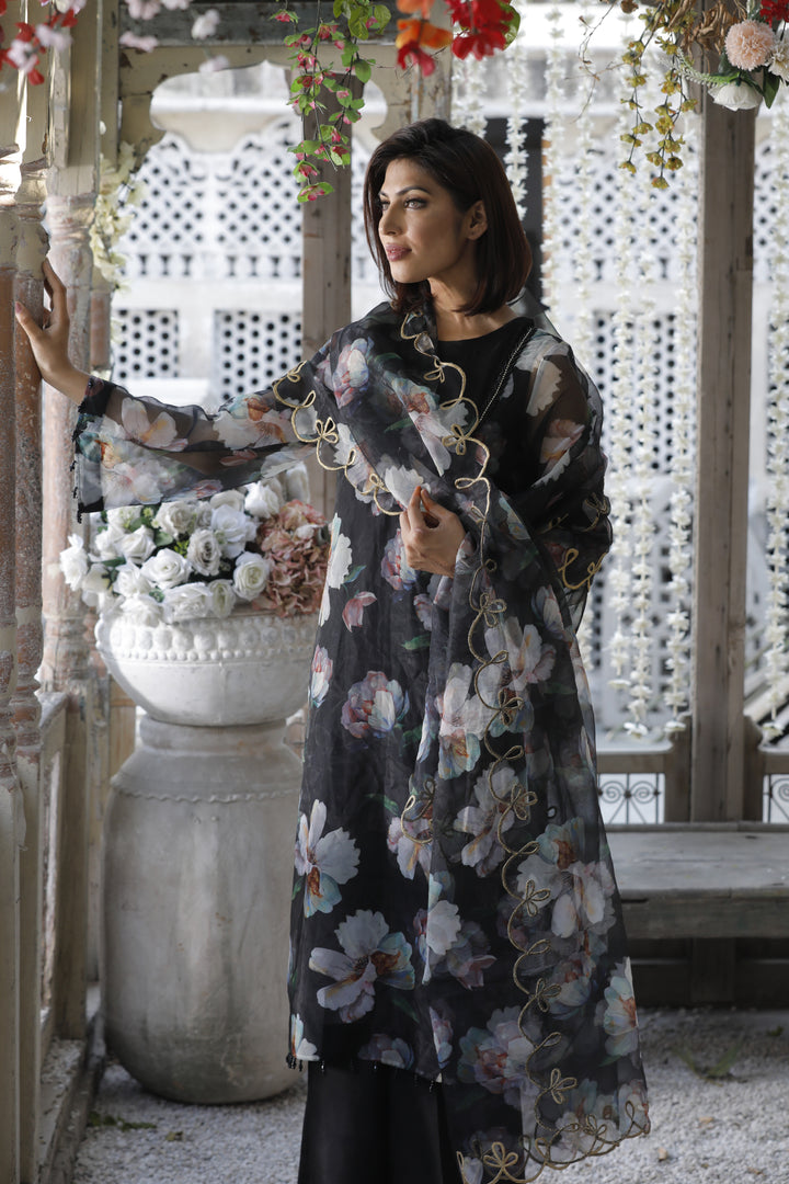 The dupatta is adorned with Tilla cutwork, which adds texture and dimension to the overall design. The Tilla cutwork complements the beading and crystal work on the sleeves and daman, tying the entire look together.