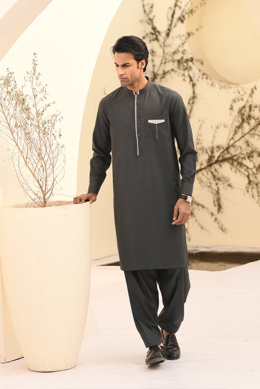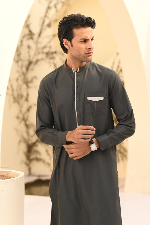 Shirt Ban with Cuff, Embroidery On Front, Button Placket, Cuffs