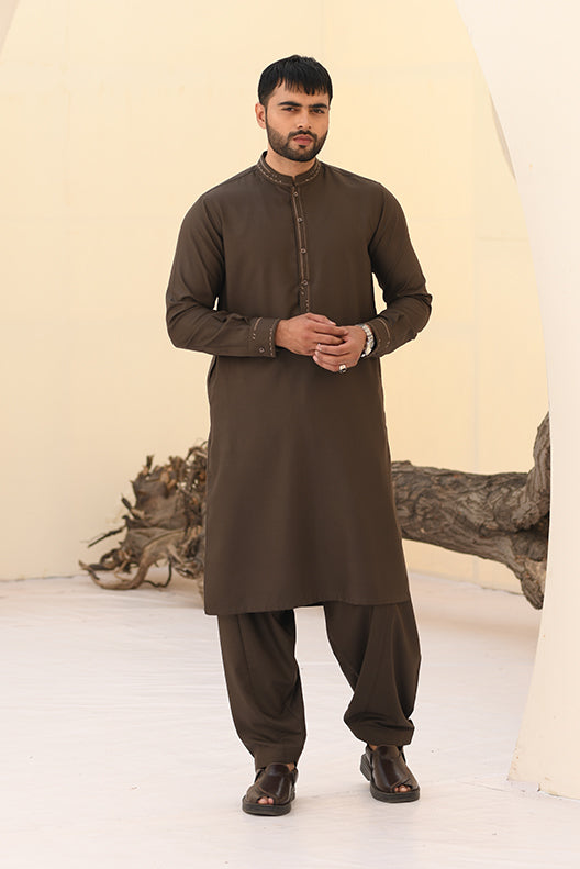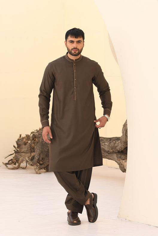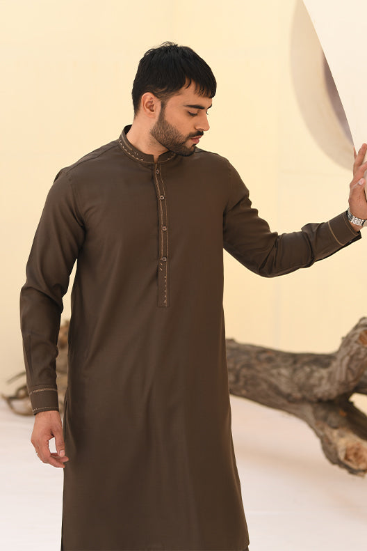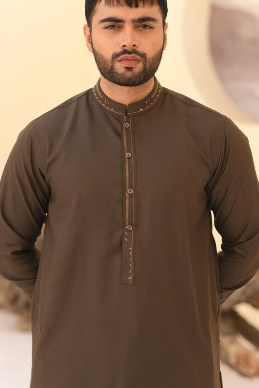 Shirt Ban with Cuff, Embroidery On Front, Button Placket, Cuffs