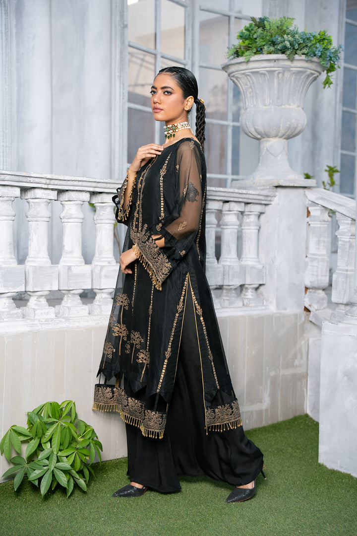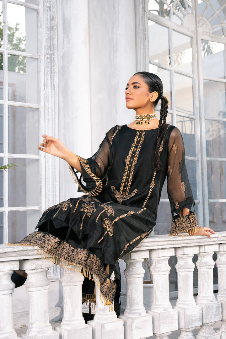 Black is forever! Let this gorgeous black organza shirt adorned with an intricate block print style you up for special occasions.