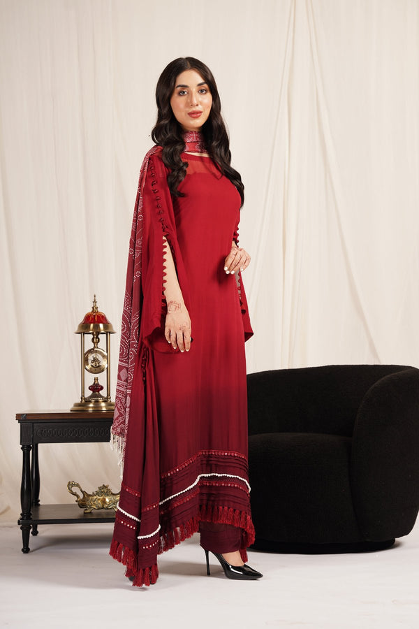 Red Chiffon 3-Piece Dress