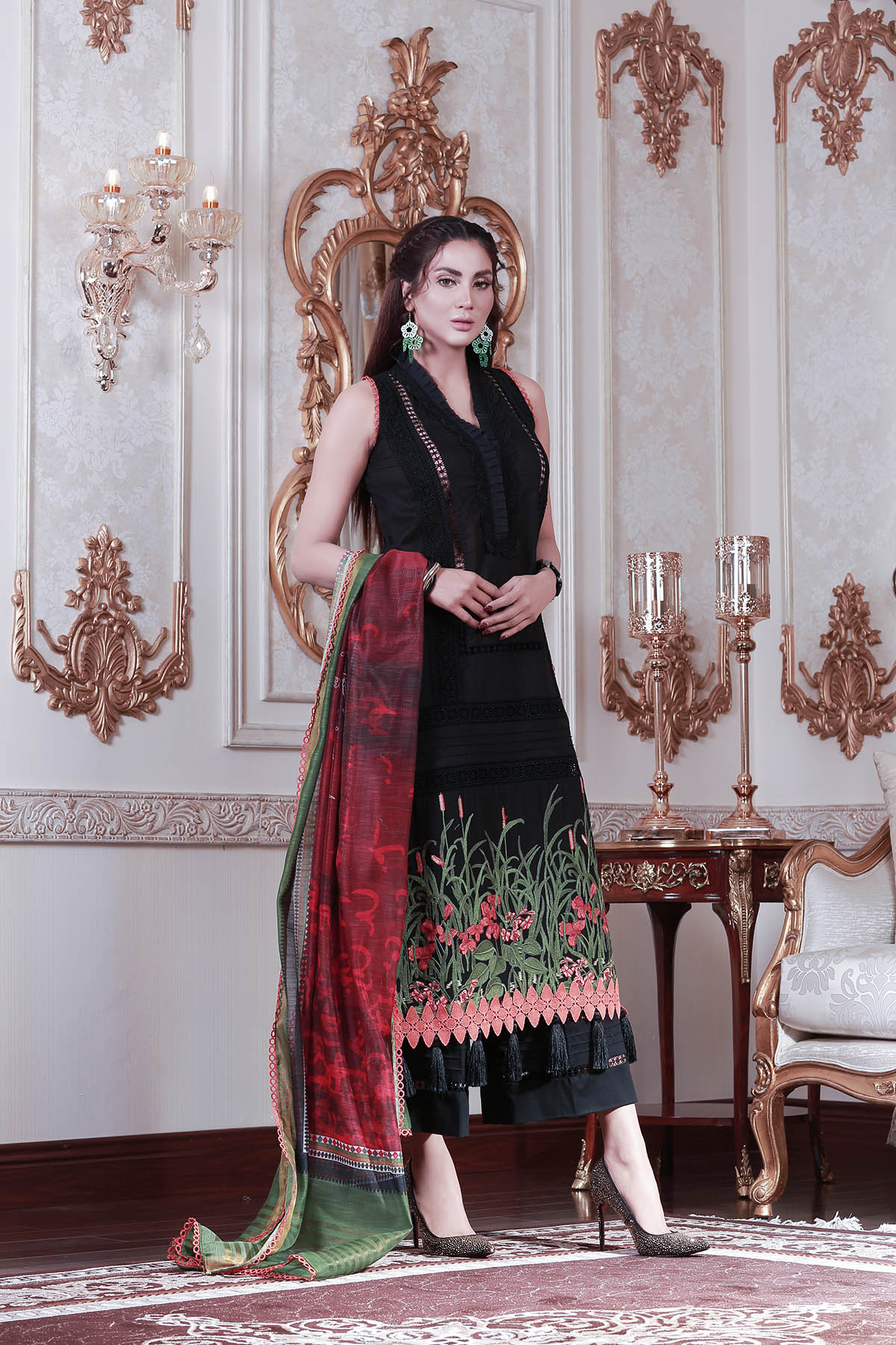 The Embroidered Khaadi Net Suit is a traditional Pakistani attire made of delicate net fabric and decorated with intricate embroidery. The suit features a short or long kameez (tunic) and often includes a dupatta (scarf). It is perfect for special occasions and celebrations.