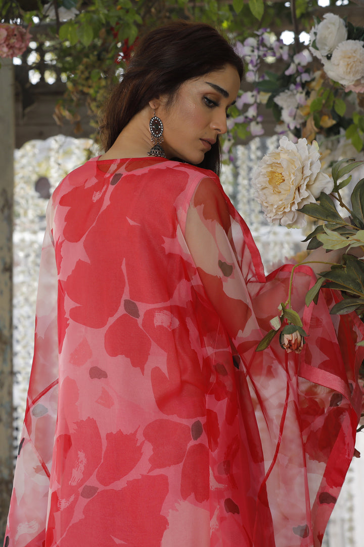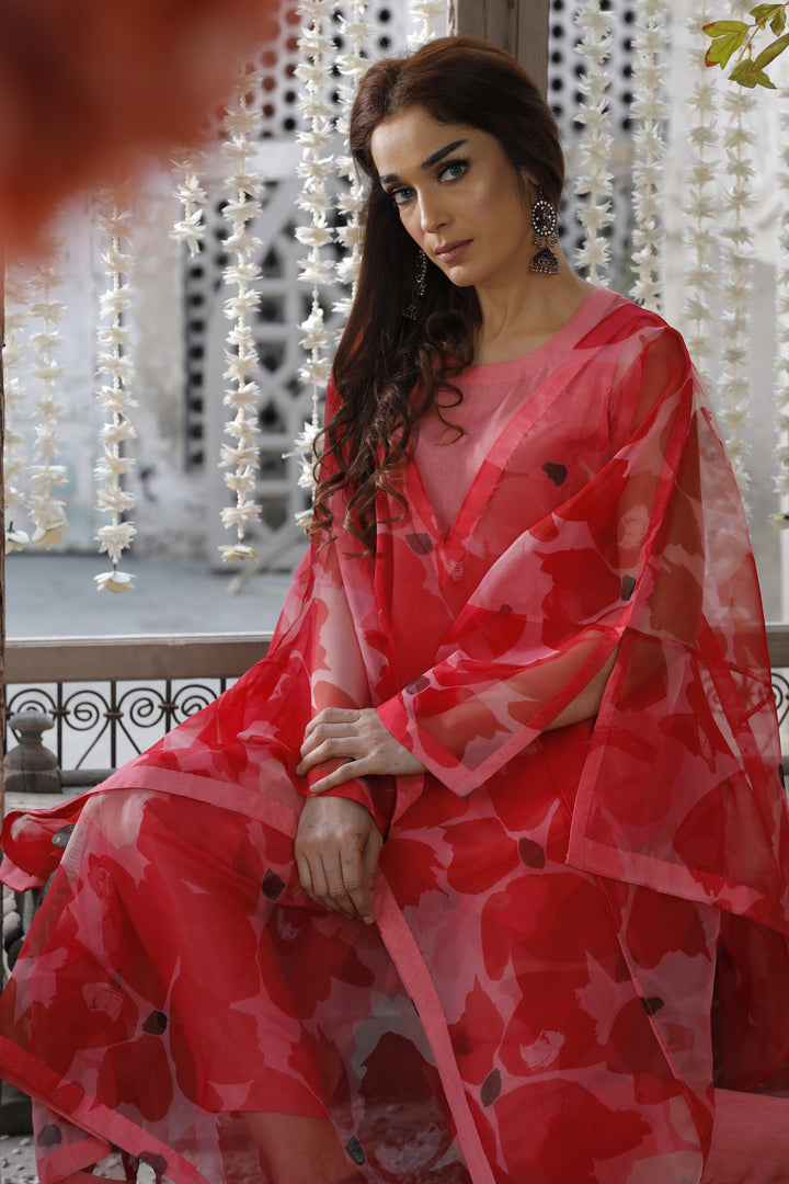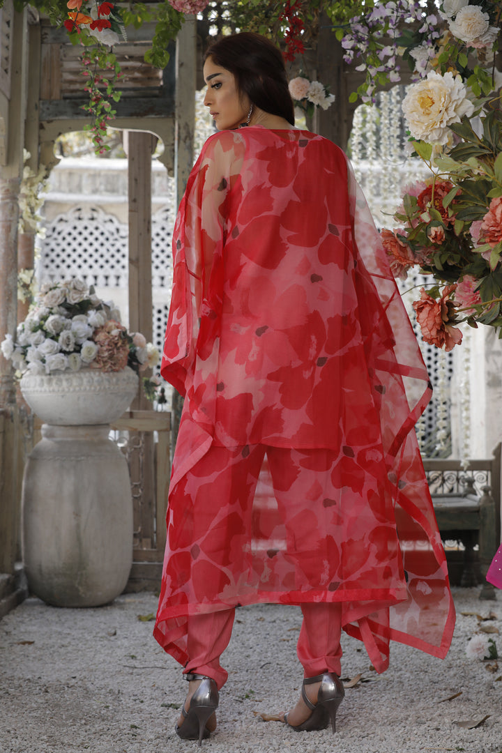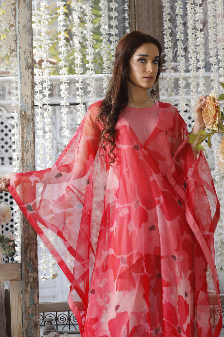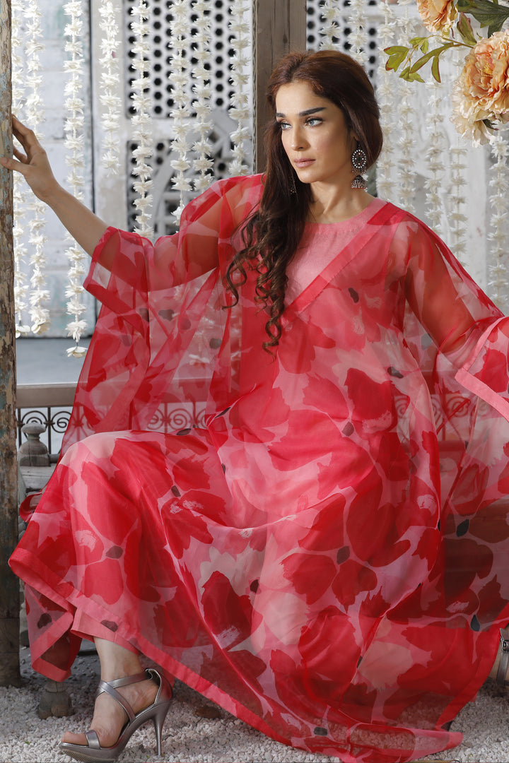 This women's 2-piece dress features a vibrant red kaftan with an organza sublimated print. The dress is made of a luxurious blend of cotton silk and viscose, ensuring a comfortable and breathable fit. Perfect for any occasion, this dress will make a bold and stylish statement.