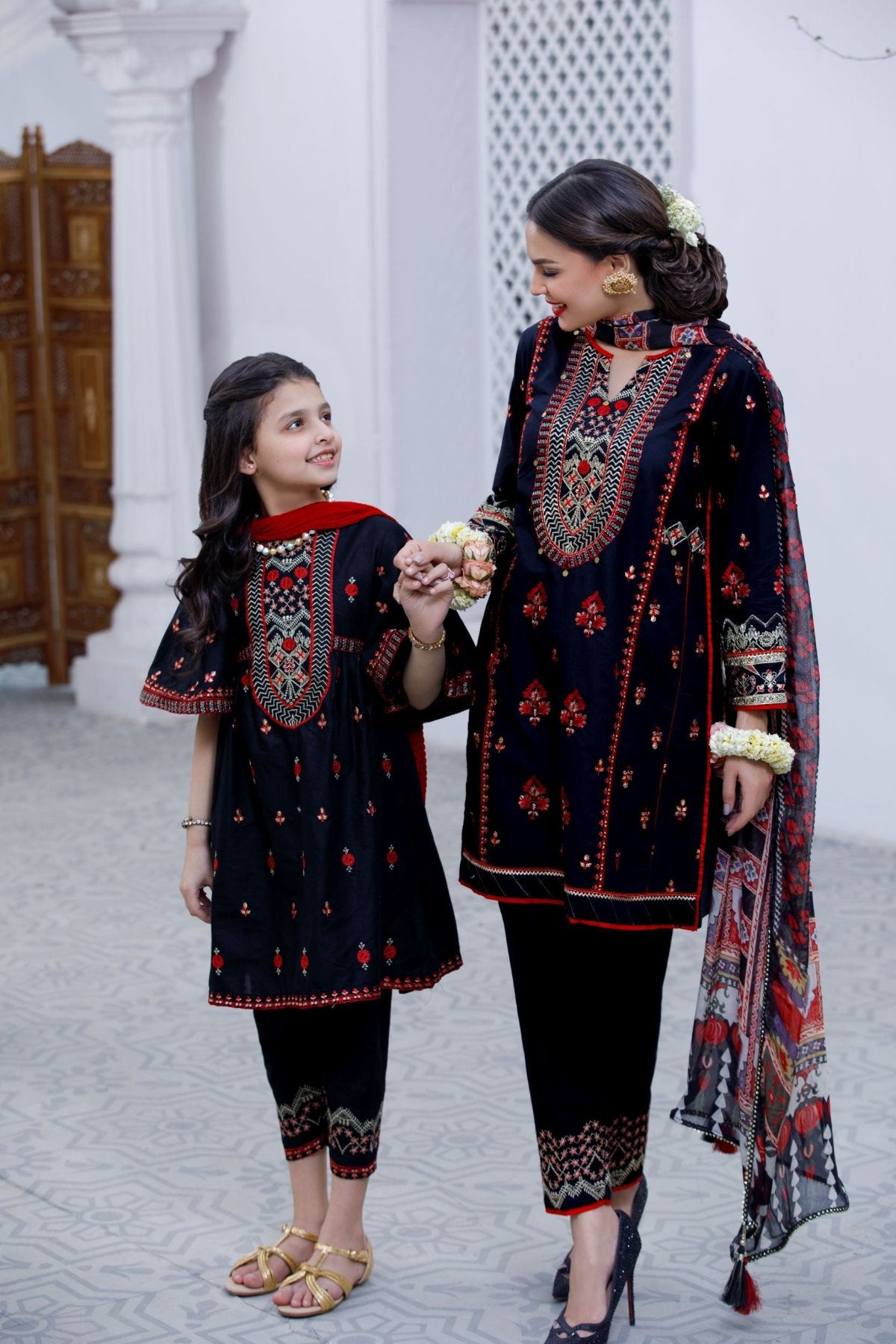 Mehryam proudly presents to you an entirely new range of luxurious, sophisticated, and eye-catching Mother-Daughter wear. An outstanding collection ranging from daylight bright to blushing red colors. Rush now and get what your hearts crave.