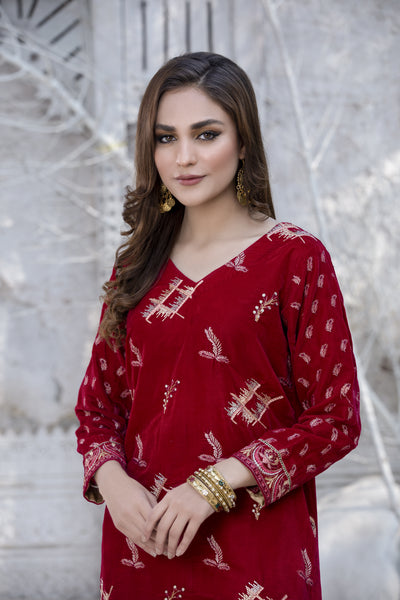 Introducing our stunning women's embroidered velvet 2 piece dress from Pakistan, a must-have for any fashion-forward woman. Made from luxurious velvet fabric, this dress exudes elegance and sophistication. The intricate embroidery on the bodice and hem adds a touch of traditional Pakistani craftsmanship to the dress, making it a unique and one-of-a-kind piece. It perfect for any occasion, whether it be a formal event or a casual dinner.