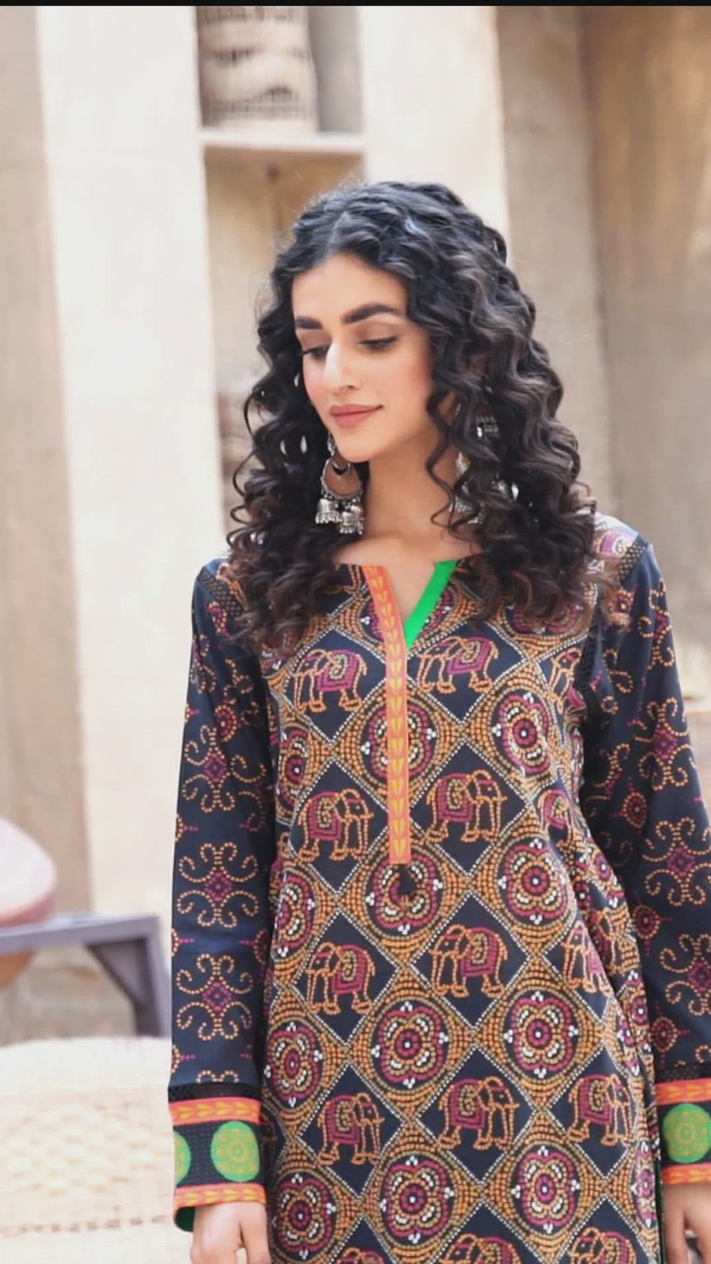 Lawn Digital Printed Shirt - Black Shirt- Video View