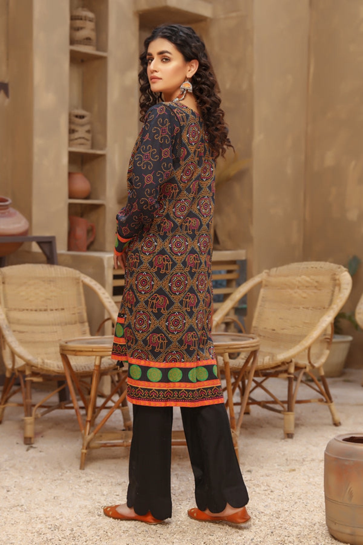 Lawn Digital Printed Shirt - Black Shirt- Back