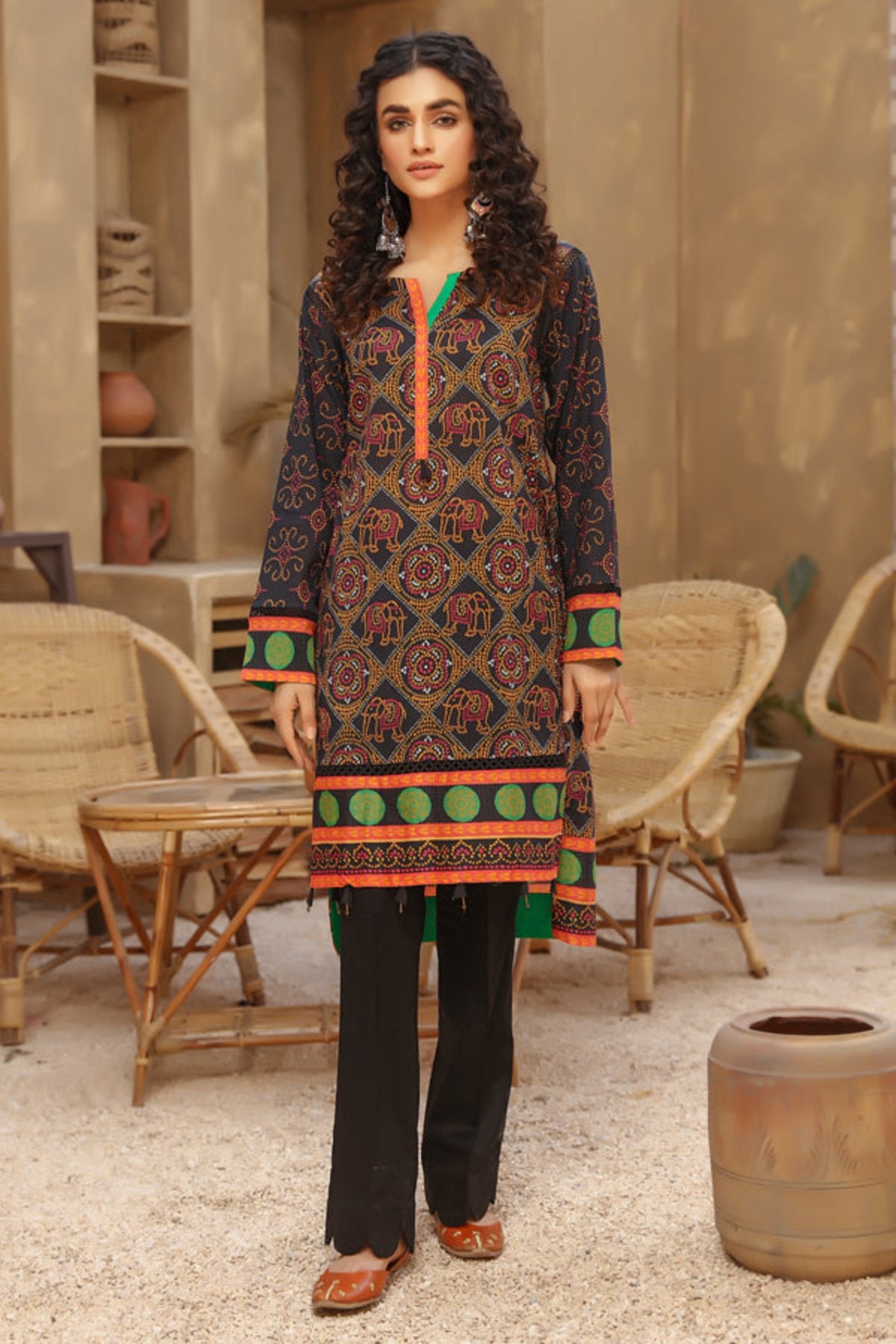 Lawn Digital Printed Shirt - Black Shirt- Front