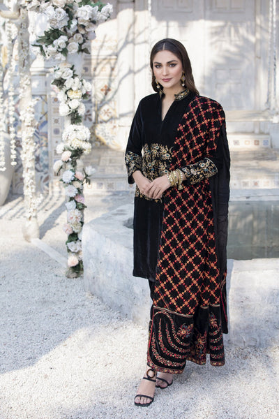 Introducing our luxurious velvet shawl, perfect for adding a touch of elegance to any outfit. Made from soft and plush velvet material, this shawl is designed to keep you warm and stylish all season long. The rich velvet texture adds a touch of luxury and sophistication to any look, making it perfect for special occasions or casual wear. The shawl is large enough to be worn as a wrap or draped over your shoulders for a chic look. It is available in a variety of colors to match any outfit and can be paired with any outfit. Add a touch of class to your wardrobe with Mehryam velvet shawl.