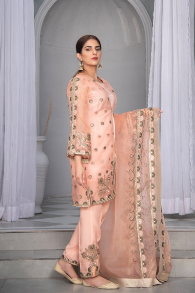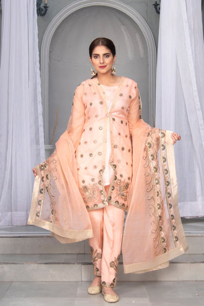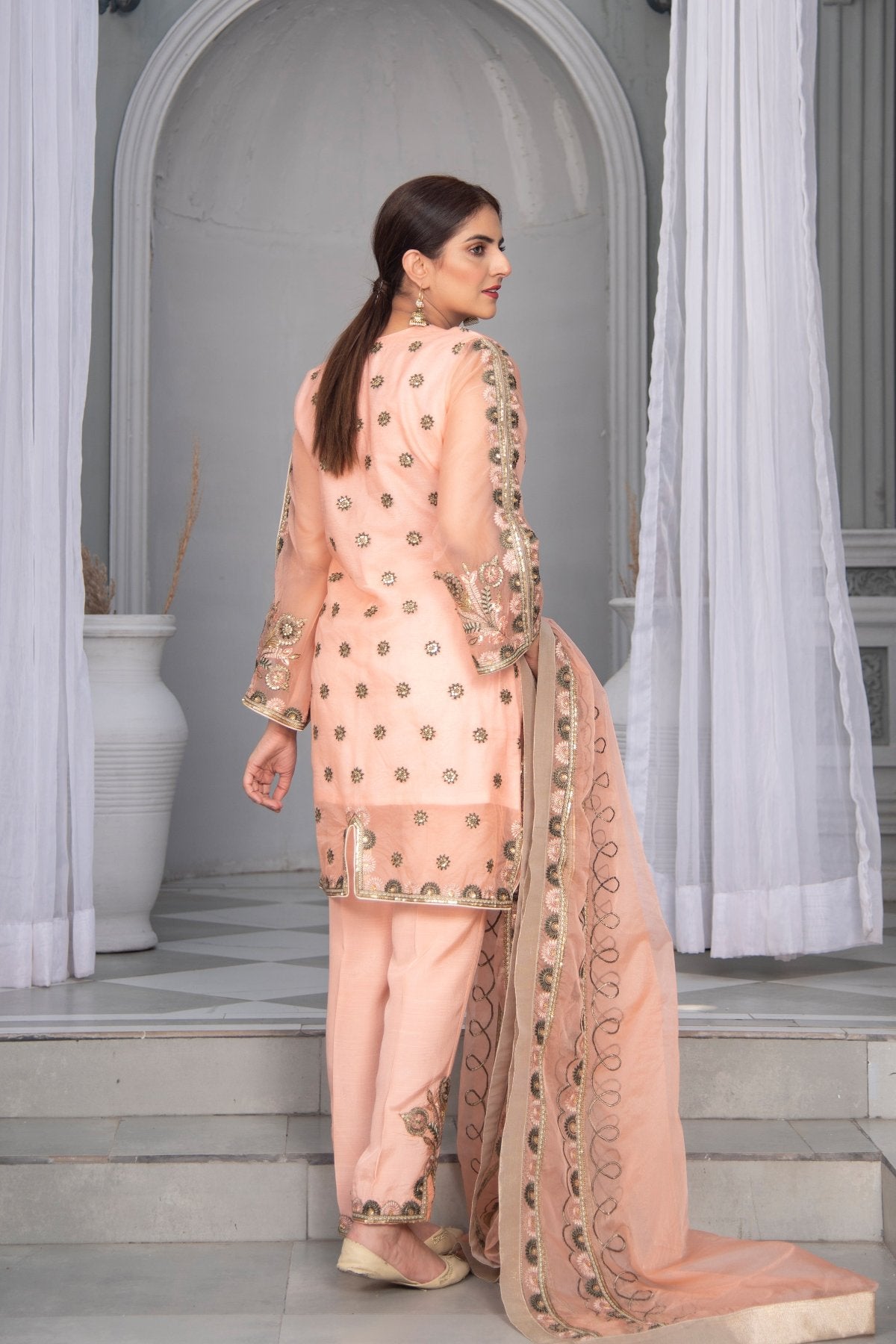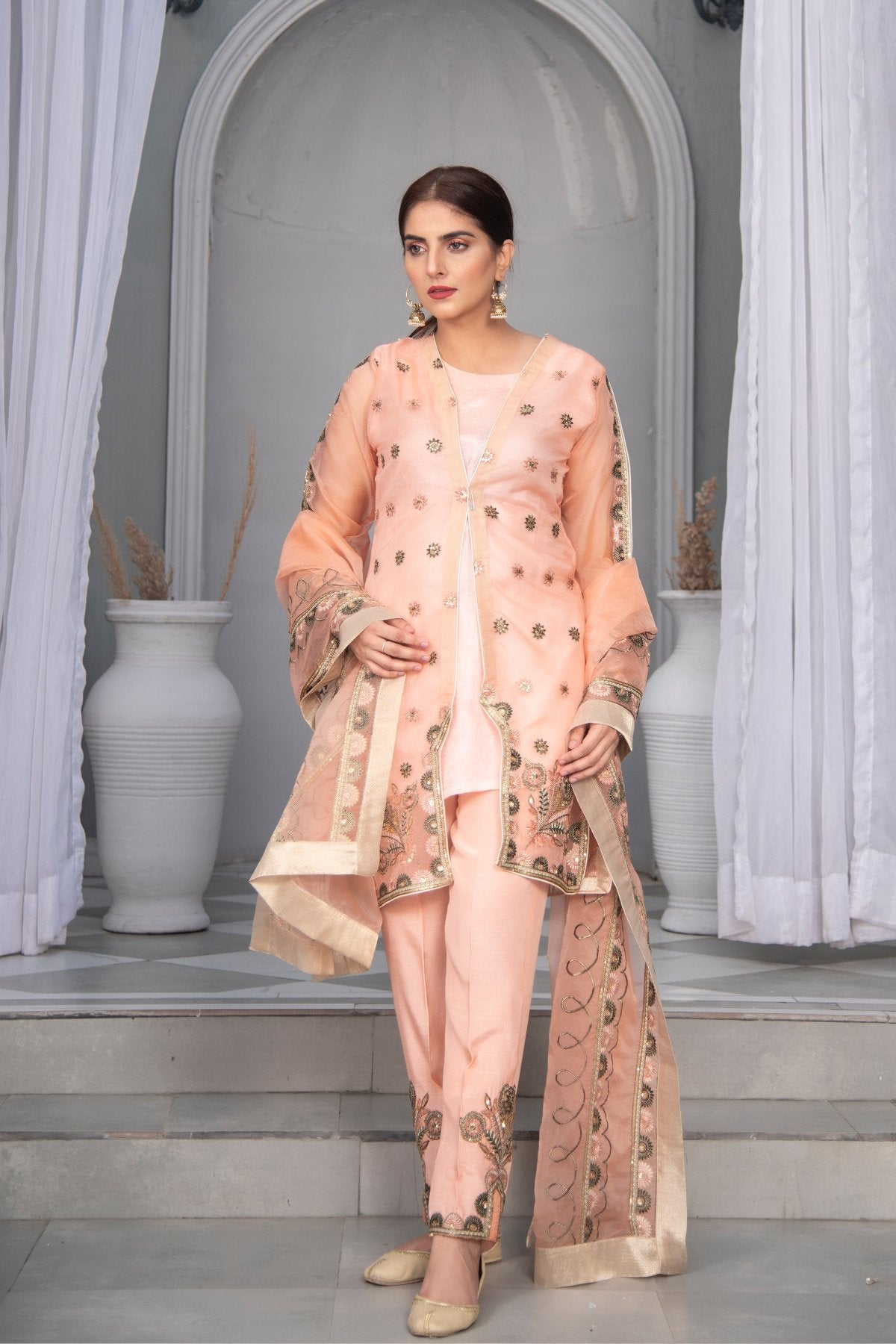 • ORGANZA SHIRT WITH EMBROIDERED NECKLINE , EMBROIDERED DAMAN PATCH AND EMBROIDERED SLEEVES.INNER COTTON SILK.